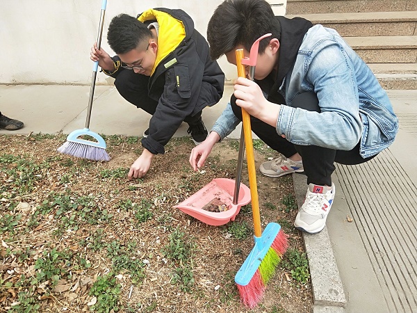 学生志愿者带着扫把、垃圾袋、铲子、铁钳等卫生工具在14号宿舍楼门口集合,在赵老师分配好工作后,同学们就开始对宿舍楼前的路面以及绿化带杂物进行清理。该活动中最难清理的应该属在花草丛中的烟头,志愿者们仔细清扫。在清理垃圾的同时,志愿者们不忘向同学们宣传雷锋精神,号召同学们投身到学习雷锋的活动中来。