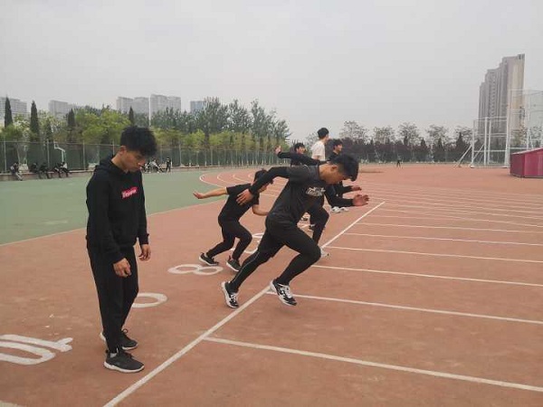 一踏进训练场,就看到我院的运动员已经在认真地做着准备运动。训练正式开始,运动员们丝毫不懈怠,认真对待每项训练,在操场上挥洒下他们的汗水。在这里,你可以触摸到跳跃的青春音符,感受到燃烧的激情,体会到四射的光芒。运动员们摩拳擦掌,跃跃欲试,把握训练的一分一秒。同时,训练场上还活跃着许多女生的身影,她们是一朵朵充满活力的铿锵玫瑰。之后,教练组织了多项测试,以确定同学们所适合的比赛项目,以便于日后的专攻练习,也有利于运动员能力突破性的提高。