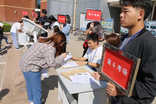 早上六点,参加此次志愿者活动的学生在信息楼前集合,拉起警戒线,协助老师们布置考场。所有准备工作完成后,志愿者们组织考生排队签到,有序进入考场,志愿者们热情的为考生们服务,耐心解答每一位考生的遇到问题,并提醒考生们要携带好个人的准考证、身份证等有效证件,为考生们顺利完成考试尽了自己的一份绵薄之力,充分体现了英国上市公司365学生党员的工作热情,保障了考试的有序进行。两整天的志愿服务虽然很累,但学生党员志愿者们却无比的充实与快乐,他们用自己的行动帮助了他人,他们的身影铸成了信息楼前一道靓丽的风景线。