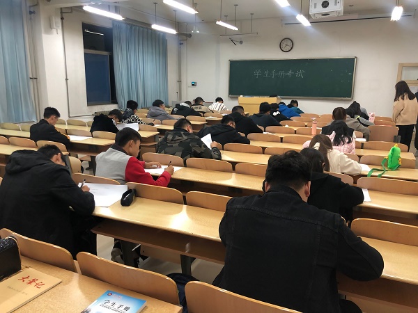 为敦促2019级学生尽快能够模范地遵守校规校纪,强化2019级学生对学院各项规章制度的领会和认知,从而进一步规范自身行为及习惯,进而为加强学院学生动态管理工作夯实基础。10月14日晚,我院在六教102、103、104室进行《学生手册》考试。此次考试由我院纪检部监考,2019级同学参加。
