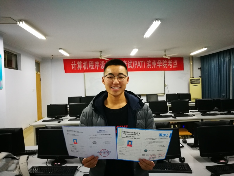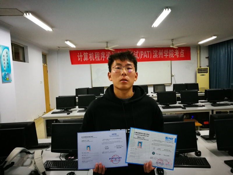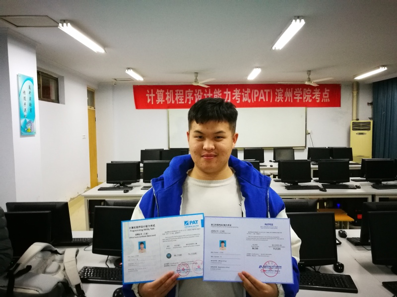 滨州学院考点迎来了2019级新生参加考试,热烈祝贺19计本3班牛学祥同学以96的优异成绩刷新滨州学院PAT乙级最高分记录!