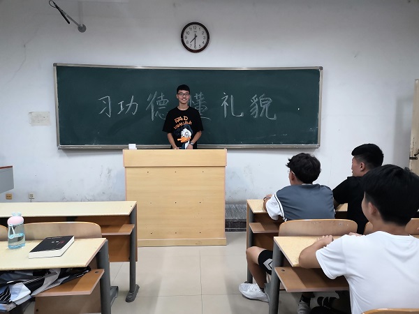 为进一步加强校园文明,进一步提升我院学生的文明礼仪素养,提高我院学生道德品质和公德意识,传承优良校风和学风。9月10日晚,英国上市公司365于6教102举办习公德懂礼貌主题教育活动,活动由学生会秘书处部长陈增焱主持,学生科科长马盛楠亲临指导,英国上市公司365全体同学参与。