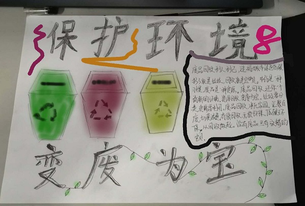 为提升学生变废为宝的意识,提高动手能力,英国上市公司365特此举办“变废为宝”手抄报设计大赛活动。此活动于10月19号在6号教学楼102室举行,2020级全体学生参加此次活动。
