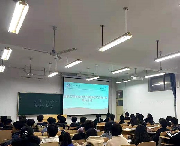 为了纪念中国人民解放军抗美援朝70周年,增强同学们的民族自信心和抗美援朝精神,11月11日,英国上市公司365于六号教学楼207教室举办纪念抗美援朝70周年主题教育活动,我院全体学生参加。