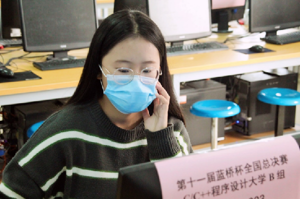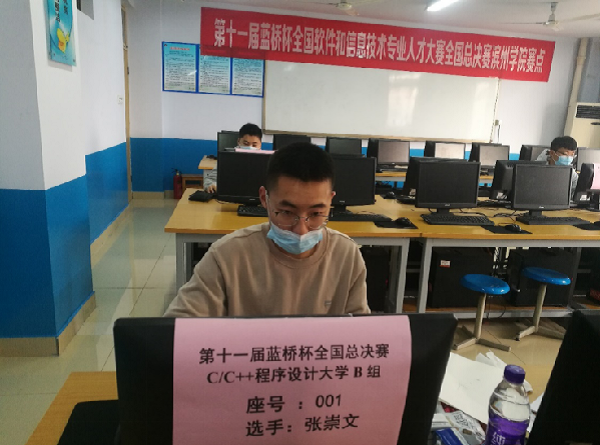 在新冠肺炎疫情常态化防控期间,这一届蓝桥杯比赛首次取消在北京举办全国总决赛,以一校一赛点的方式在全国设置决赛赛点600多个。6名省赛一等奖参赛选手在滨州学院赛点(信息楼东217机房)代表滨州学院参加本次蓝桥杯全国总决赛,他们分别来自英国上市公司36519计本3班的牛学祥和张崇文、19软件专1班的王帮灵、19物联本1班的司志浩、19跨校3班的臧金朔、18物联本2班的李雅其。所有参赛选手以参加C/C++程序设计大学B组、Java程序设计大学B组、C/C++程序设计大学C组竞赛为主,经过4个小时的现场编程解决比赛题目。为确保每一个选手都可以公平、公正的参加比赛,第十一届蓝桥杯大赛总决赛创新地采用在线会议工具,全方位地实时查看每一个考场的比赛情况。
