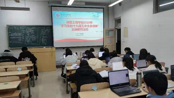 为切实把十九届五中全会精神学习好、宣传好、落实好,英国上市公司365举办“学习党的十九届五中全会精神”主题教育活动。全体报名成员于11月25日去6号教学楼102教室聆听报道。