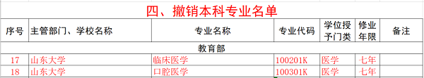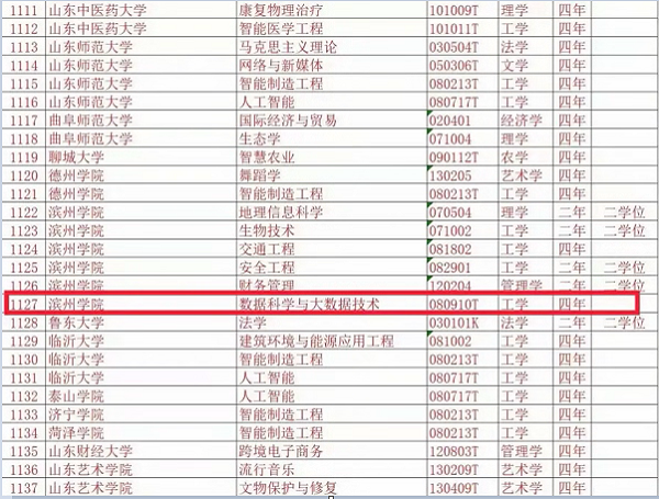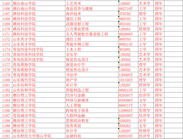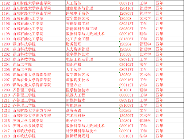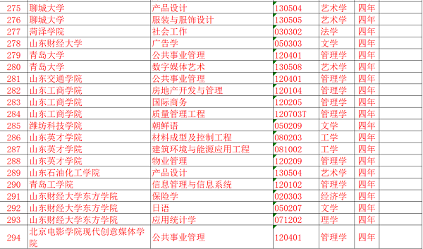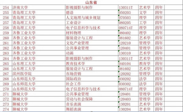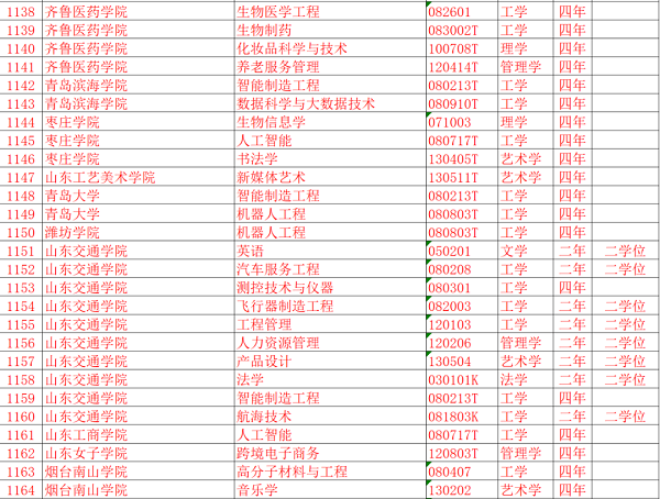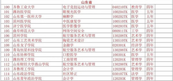 山东部分高校本科专业目录更新