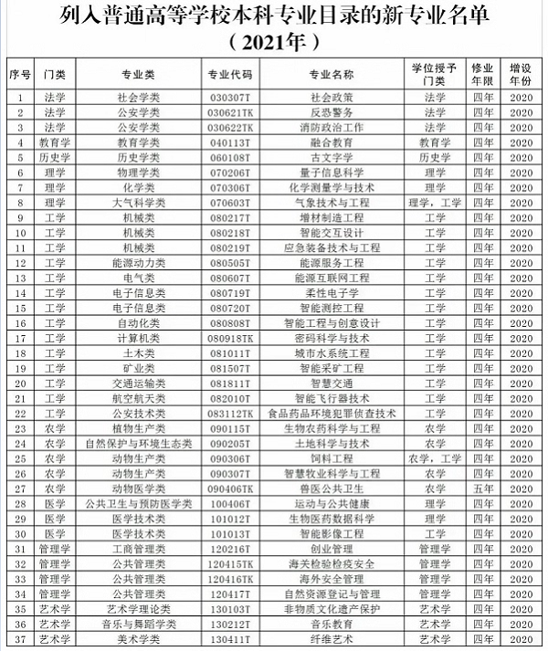 我省新增备案本科专业149项,新增审批本科专业18项,调整学位授予门类或修业年限专业8项,撤销本科专业43项。名单如下: