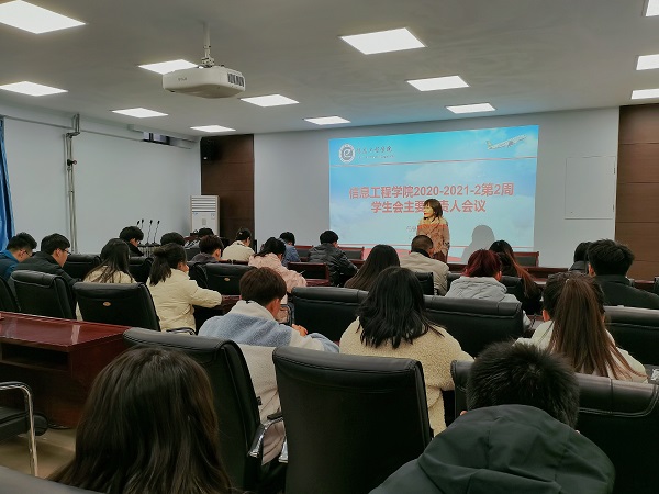 会议上,首先总结了上一学期工作中的不足,吸取经验,再接再厉。对新一学期学生工作进行新的安排,肯定了我院学生会的工作态度,并对学生会寄予高度期望。会议重点提出新学期对计算机科学与技术学术认证工作的任务安排,强调学院对该项认证的重视性,予以学生会成员高度期望。希望学生会全体成员能够总结经验,再接再厉,在以后的工作中取得更好的成绩,并鼓励各位干事保持积极性,提高执行力,勇于创新。