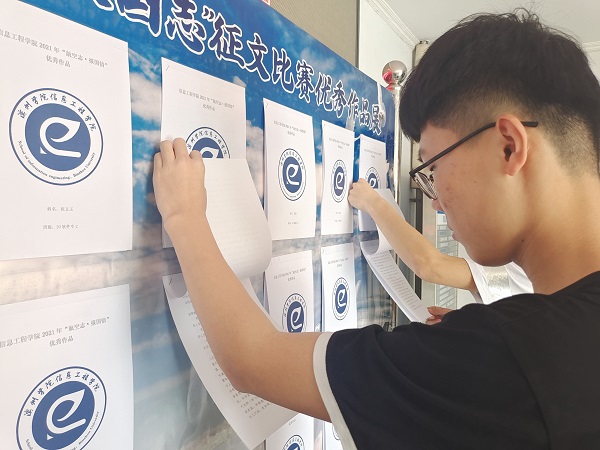 征文展览板一经展出,参观者络绎不绝。本次展览宣传有效发扬了我校航空文化精神,激发了同学们爱国情怀,同时也增强了同学们对文化的热爱,赢得了师生的共同赞许。