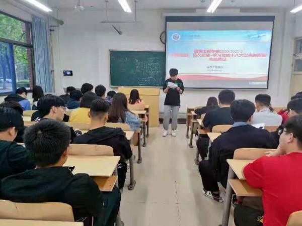 主题团日上马盛楠老师围绕本次活动主题,为同学们讲述了党的十八大以来的历史,让同学们了解身边的红色经典示例以及我国在党的领导下全面建设社会主义现代化国家新征程中取得的辉煌成就和积累的典型经验,热情讴歌党了的光辉业绩。回望过往的奋斗路,眺望前方的奋进路,必须把党的历史学习好、总结好,把党的成功经验传承好、发扬好,同时也让同学们认识到了自己的责任和使命,激发了同学们的爱国热情,营造出奋进新征程、创造新奇迹、展现新气象的浓厚氛围。