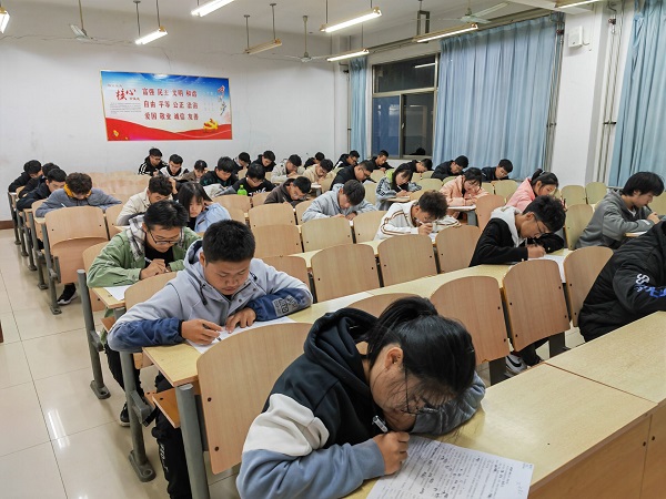 本次考试旨在让同学们更加了解学校各项事宜,更加熟悉学校各项规章制度,方便以后的学习生活。10月22日晚7点,各班同学准时参加考试,学生会及自律部巡逻监考,以维持考场纪律。张智超老师也在各班查看考试情况。同学们奋笔疾书,整洁的字体铺满了整张试卷,由此可以看出,同学们对本次考试的重视、对学校概况的了解、对未来大学生活的期待。相信同学们在以后的学习生活中会用实际行动诠释了滨州学院的校训:明德、砺学、日新、致远,体现了滨州学院的校风:求实、严谨、团结、奋进,彰显了学校精神:自强不息,守正出奇。