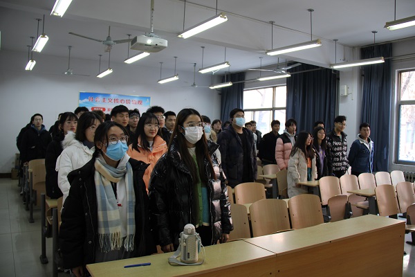 仪式结束,使同学们坚定理想。并希望青年学生干部在工作中勇于担当、勇于实践,做到“以青春之我创造青春之中国”,进一步坚定跟党走地信念,更好地用马克思主义中国化最新成果武装自己,成长为合格的社会主义事业接班人。