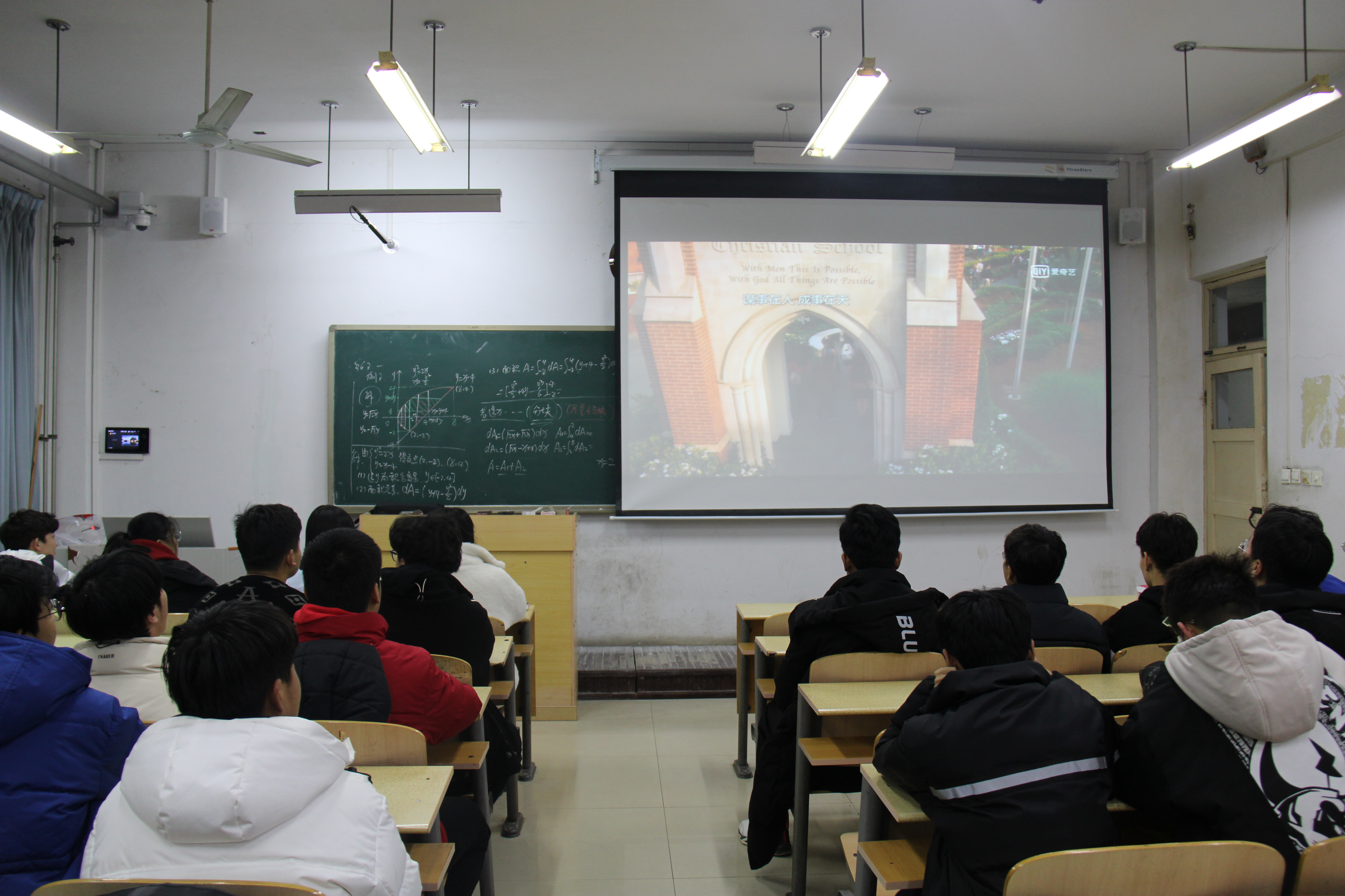 本次的影片名称为《弱点》。七点前,同学们陆续到达指定教室,准备进行影片观看。此次观影活动选择《弱点》这部电影,意在帮助同学正视自己的不足,缺点,以此来帮助同学们以积极,自信的态度面对生活、学习。观影过程中,同学们聚精会神地注视着屏幕,在大屏幕光亮的照射下,认真观影。在两个多小时的观影中,充满励志的电影情节深深吸引着每位同学。同学们认真观看,用心体会如何通过努力去实现自己的理想。