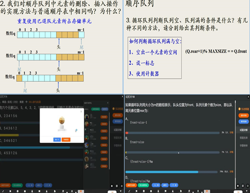 为了提高线上直播授课效率,激发学生对课堂的关注度,将教学内容以问题为线索串联起来,也将讲授与慕课学习紧密结合。在问题的解答中,突出对重难点内容的分析,并穿插互动测试和随机提问,调动学生的积极性,也更有效的检测了教学效果。
