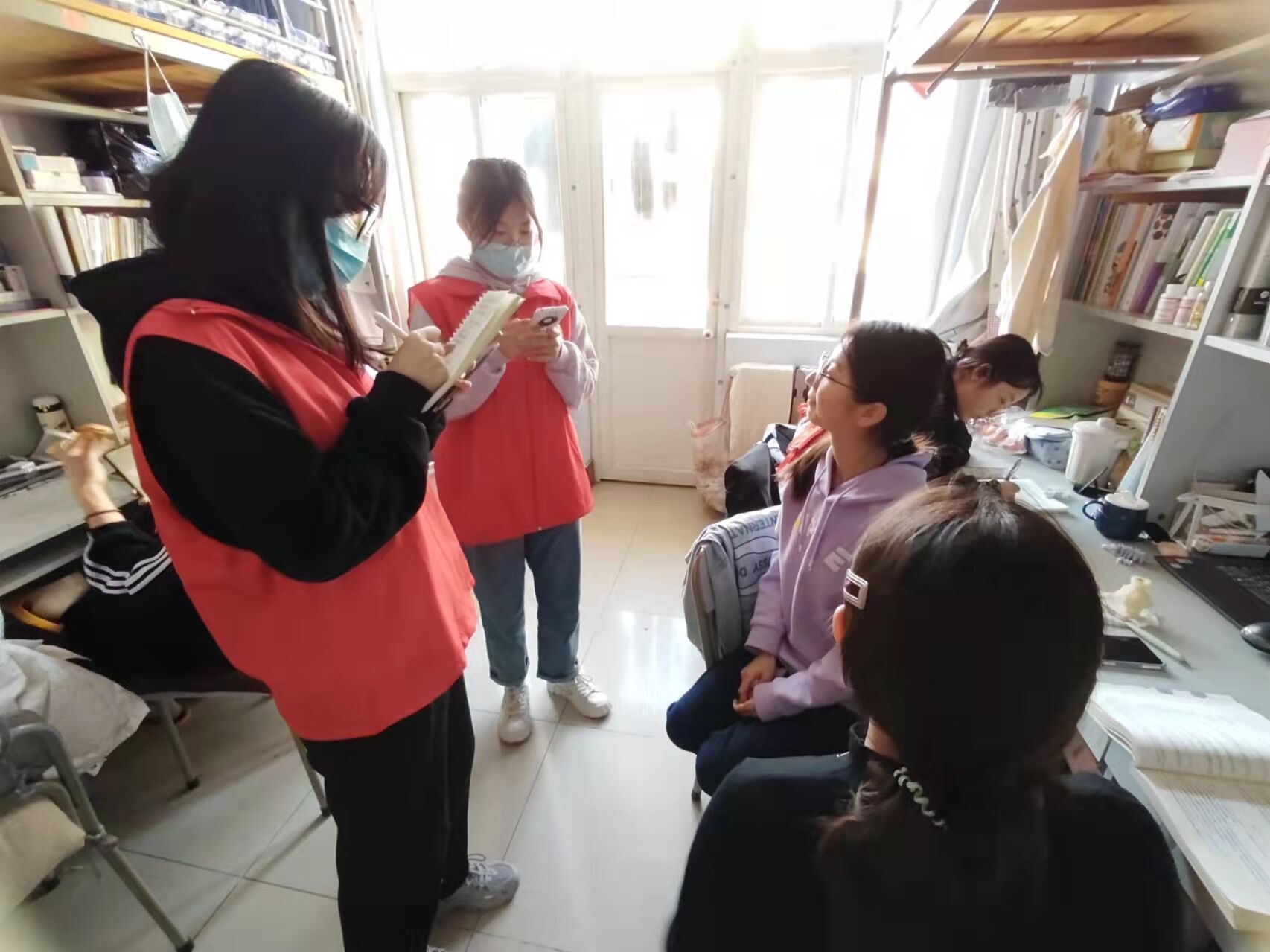 宿舍的们不应该隔开问题和困扰,我院“E心战疫”志愿服务先锋队敲开宿舍的门,带好口罩,穿好红马甲,走入宿舍,希望了解到同学们真实的想法。志愿者首先询问同学们是否有需要的物资,例如药品、口罩等,然后询问同学们是否存在宿舍间矛盾,了解同学们网课时的各项需求等。需求与问题是切入口,调研活动的进行更多的是为了让同学们有更高质量的网课生活,为同学们提供更多的便利。志愿者统计好问题,上报给学生科科长马盛楠,后续会切实解决同学们的困扰,同时向同学们提供线上“宿舍解忧杂货店”反映途径。