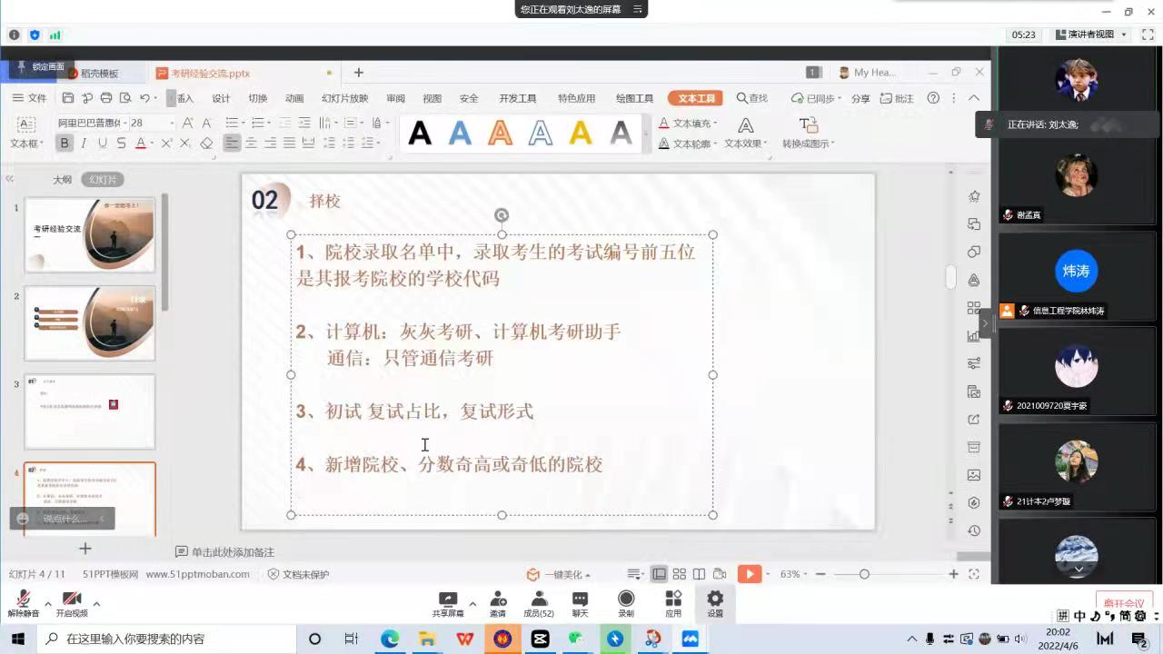 考研是每个大学生都想踏上的一条路,但是很多同学对考研存在不少的困惑,为此,4月6日,英国上市公司365举办“熠熠青春,研梦起航”线上考研交流会,邀请我院优秀考研生为同学们介绍和解答考研相关问题。