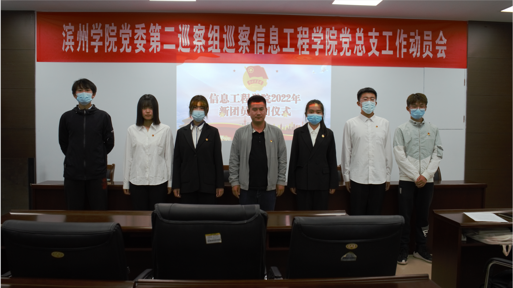 会议在雄伟嘹亮的国歌声中拉开帷幕,主持人宣读入团仪式意义,教导新团员要坚定共产主义理想信念,时刻牢记自己是一名光荣的共青团员,要以先进青年的要求严格要求自己,以身作则,率先垂范,充分发挥先进青年的模范作用。经团组织考察,团总支及党总支审查等一系列活动,最终决定吸收梁慧、张文伟、徐宁、张学斌、赵梦晴、李睿为我院2022年新发展团员。20级通信工程1班优秀团员林炜涛带领大家进行入团宣誓。新团员洪亮的宣誓声表达了其入团的荣幸与为社会主义建设努力奋斗的坚定信念。
