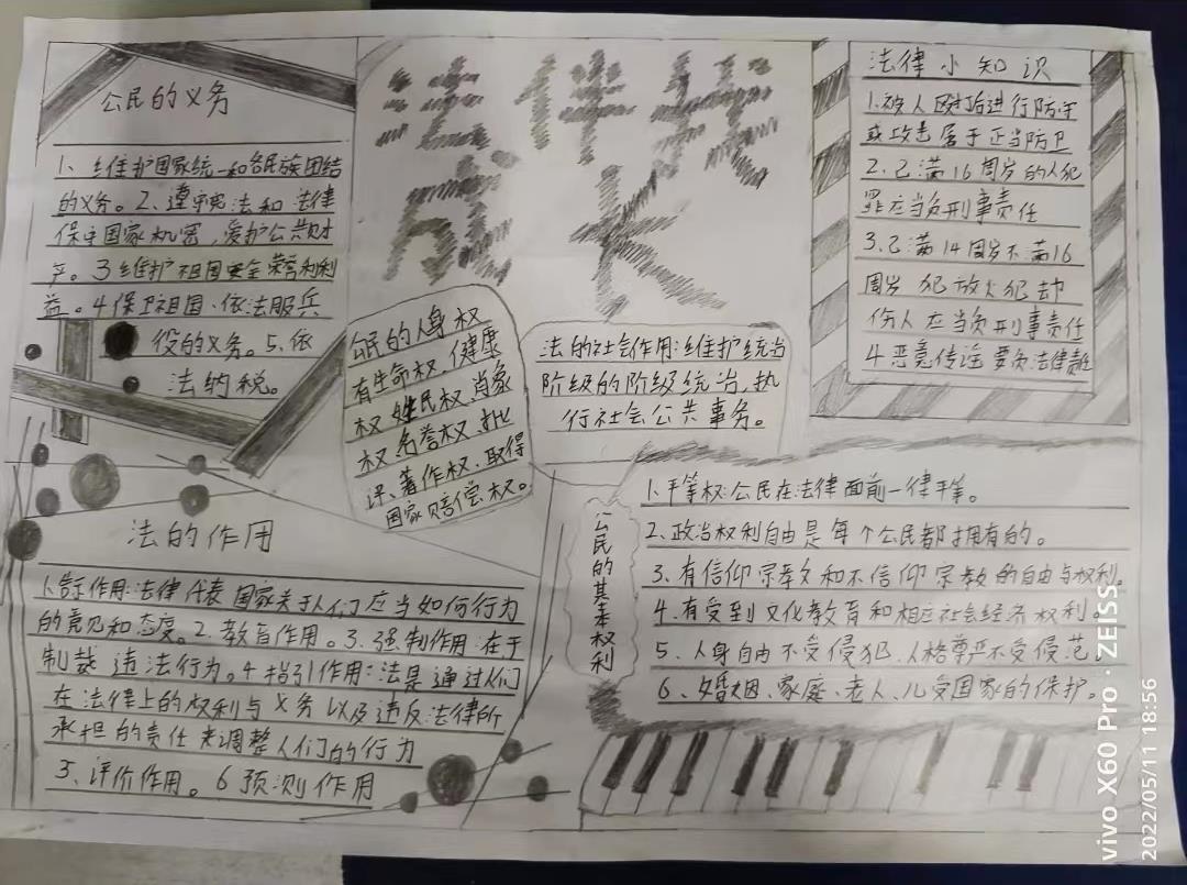 比赛中,一幅幅五彩缤纷的手抄报承载着实用的法律知识,在满足视觉享受的同时,增长了学生们对于法律的认识。法制宣传教育是提高全民素质,推进依法治国基本方略,建设社会主义法治国家的一项基础性工作。深入开展法制宣传教育是构建社会主义和谐社会的内在要求。深入开展法制宣传教育是加强党的执政能力建设和先进性建设的客观要求。