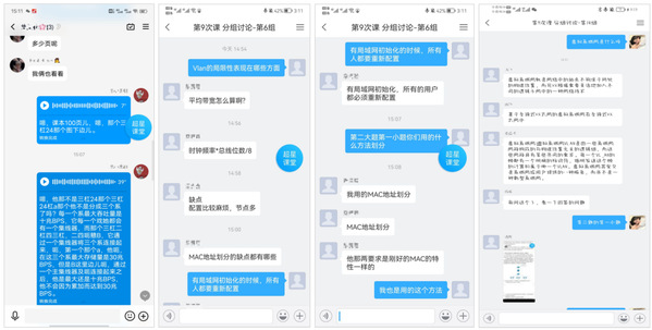 (1)异“地”分组,同步互动。在分组讨论环节,由于学生可能来自于不同的地点(宿舍),甚至组内成员男女生交叉,利用分组讨论功能,可以自动为小组建立“小组群”,学生可以不受空间限制同步讨论,很好地解决了云端教学学生间互动难的问题。如图5所示。