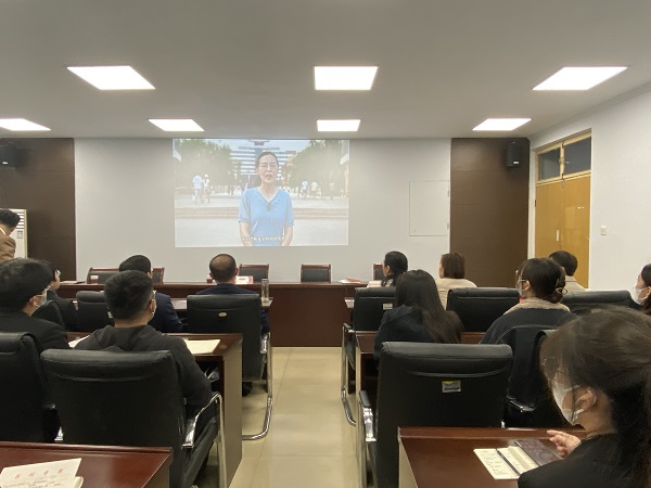 与会党员还共同观看了工会党支部刘明同志《让鲜红的党旗高高飘扬在疫情防控志愿服务最前线》微党课视频。