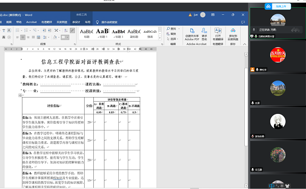 会上,参会人员就“面对面评教的评价指标设计”、“实践环节答辩记录模板设计”、“课程目标达成评价制度的文件修订”、“课程质量评价报告模板的改进”、“形成性评价记录模板的改进”展开讨论,并从帮助学生如何更好地评价自身的学习成果及课程材料如何更好地反映学生产出、更有效地开展教学工作等方面提出改进意见,并安排专门人员跟进后续的改进方案。