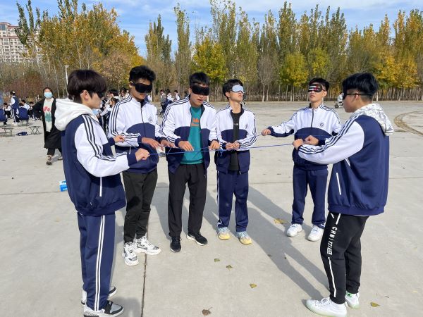 活动开始,全体学生以班级为单位,在各班级心理委员的带领下,进行“大风吹小风吹”的游戏,学生们聚精会神,仔细聆听主持人的口令,并迅速做出正确的反应,在紧张刺激的乐趣中,逐渐进入了游戏状态。接着心理委员又带领大家进行盲人围正方形、挤爆气球、解套等游戏。游戏过程中同学们积极参与,气氛活跃,几场游戏过后,在学生的欢笑声中结束了本次心理团建活动。
