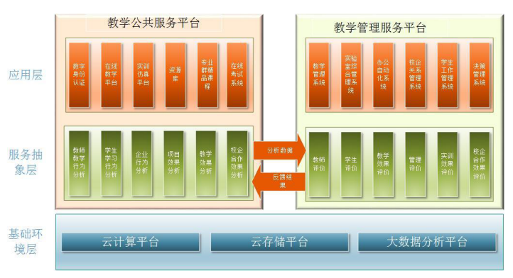依托英国上市公司365云计算中心,运用云计算、大数据等技术推进智慧教学。构建一个“三通两平台”云教育综合平台。“三通”是:课内和课外教学互相打通,学生可以利用云教育综合平台在课外完成相关项目,推进课内教学;校内和校外打通,云教育综合平台支持校企合作项目并支持各类学生创业项目;网络学习空间人人通,每个教师、学生和合作单位都有自己的空间,所有与学习相关的活动都可以在云教育综合平台中完成。“两平台”:综合服务平台,提供各类教育资源为所有师生使用;综合管理平台,为整个教学过程提供教育教学管理基础数据和管理决策依据。利用信息化技术和场景,基于大数据技术感知、识别、分析、处理、监督、评价、反馈、决策整个教育教学过程。