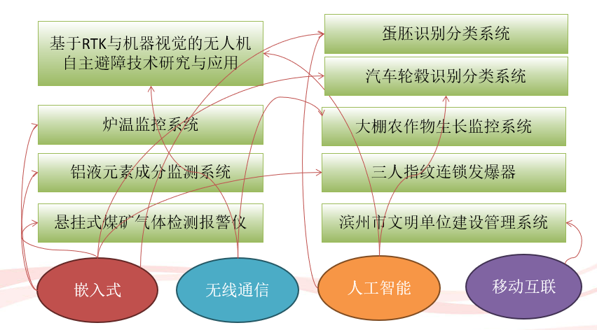 注重与校企合作研发,通过教师和学生参与校企合作研发,一方面能够提高师生实践水平,另一方面还可以积累提炼更多的贴近实际的项目案例,提升学生解决复杂工程问题能力。近四年来,物联网工程专业的教师和学生参与了10余项校企合作研发项目,开发过程中用到嵌入式、无线通信、人工智能、移动互联等物联网知识和技术,较好的提升了师生专业水平。主要的校企合作研发项目如下图7所示。