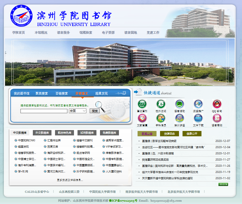 图4 滨州学院图书馆网站