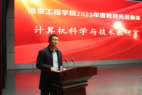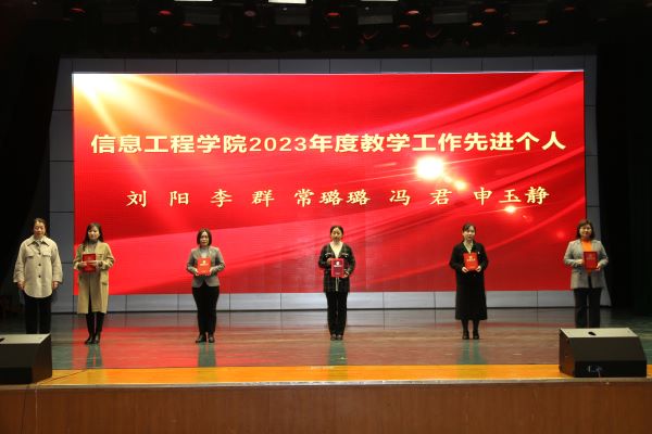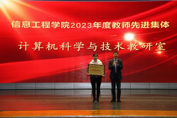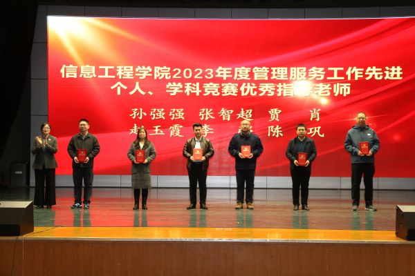 孙银河为获得学院工程教育认证突出贡献奖的教师颁发证书,为计算机科学与技术教研室颁发教师工作先进集体奖牌;教务处副处长齐丽霞、科研处副处长李永、学院院长王海燕分别为获得教学工作先进个人、科研工作先进个人、管理服务先进个人和学科竞赛优秀指导教师荣誉称号的教师颁发证书;学工处副处长王泰宁、学院党总支书记李华分别为获得学院先进班集体称号的班级代表和优良学风宿舍的宿舍代表颁发证书;合作发展处副处长李军为获得校企合作奖学金的同学颁发证书;党总支副书记刘占贵、副院长李建磊、副院长孟伟分别为获得学院2023年度学习标兵、学生干部标兵、科创标兵的学生颁发证书。