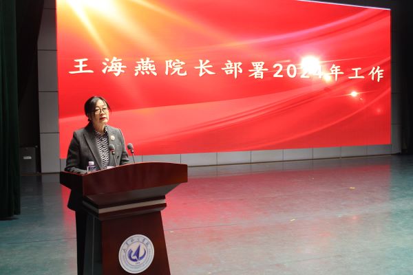 院长王海燕简要回顾了学院2023年取得的工作成绩,并对2024年学院重点工作进行了部署安排:2024年,学院将继续牢固树立抓好党建是最大政绩的理念,以高质量党建引领和推动学院高质量发展,聚焦学校“三大攻坚”任务和“全面建成航空特色鲜明的高水平应用型大学”的发展目标,深入推进协同育人、协同创新、协同发展,聚力实现学院内涵式高质量发展聚力学科建设任务,力争实现国家级科研项目、省部级科研项目等高水平学术成果新突破;聚力本科专业建设,高标准严要求推进审核评估工作;聚力师资队伍建设,坚持师德师风第一标准,营造良好氛围,继续发扬爱岗敬业、严谨笃学、创先争优的优良传统;聚力高质量人才培养,关注学生诉求与需要,为学生成长成才提供条件保障和思想护航。