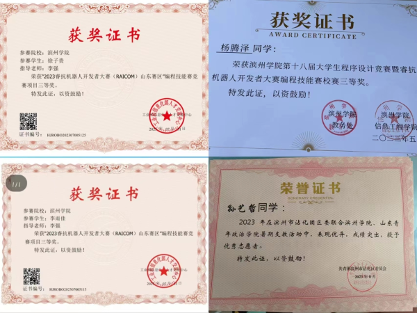 在校期间,本班级在教学考勤、专业考试、班风建设、文化活动等各方面建立了一系列考核指标并认真实施,取得良好成绩。同学之间进行一对一帮扶,以提高班内的综合成绩,形成了良好的学习氛围。同学们积极参与学校组织的各类科技创新,在机器人开发者大赛、中国大学生计算机设计大赛、大唐杯、计算机挑战赛、全国大学生英语竞赛等各类赛事中取得优异成绩。