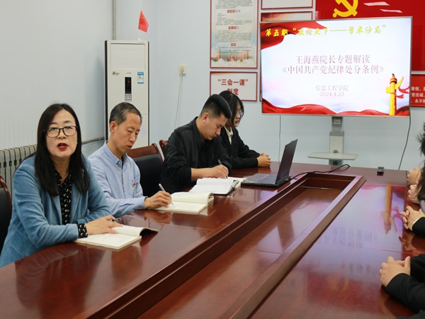 活动伊始,学生第二党支部书记张智超向全体党员介绍了中央修订《条例》的背景及时代意义,并带领大家就《条例》内容进行了细致学习。王海燕指出:“党中央着眼解决大党独有难题、健全全面从严治党体系,对《条例》作了修订。这是中国共产党坚持完善纪律体系,坚持严的基调,坚持问题导向和目标导向相结合的具体体现,有利于全党全面贯彻习近平新时代中国特色社会主义思想和党的二十大精神,为以中国式现代化全面推进强国建设、民族复兴伟业提供坚强纪律保障。”王海燕强调:“青年党员应该学条例、知规矩、见行动、做榜样,通过专题学习,成为学习上的排头兵,工作中的领头者,生活上的示范者。”