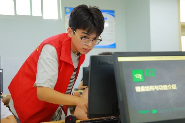 在课堂上,志愿者利用其专业知识,向同学们传授计算机操作系统的基础知识,其中包括开机、重启等基本硬件操作流程,并通过上机实操的方式将键盘及鼠标的使用方法分步骤教授给孩子们。随后志愿者详细讲解了桌面图标的含义与操作方法,向同学们演示了文件管理与搜索技巧,让孩子们学会了如何使用word管理自己的电子学习资料。此外,志愿者们特别强调网络安全的重要性,引导孩子们认识常见的网络陷阱,培养良好的网络行为习惯。