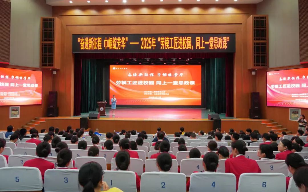 4月17日,由我校工会(妇委会)与滨州市总工会联合举办的“奋进新征程,巾帼绽芳华”——2025年“劳模工匠进校园,同上一堂思政课”活动在学苑会堂举行。我校党委委员、副校长孙银河出席活动;我校工会主席、妇委会主任王秀丽,滨州市总工会女职工委员会主任蔡洪霞分别致辞。