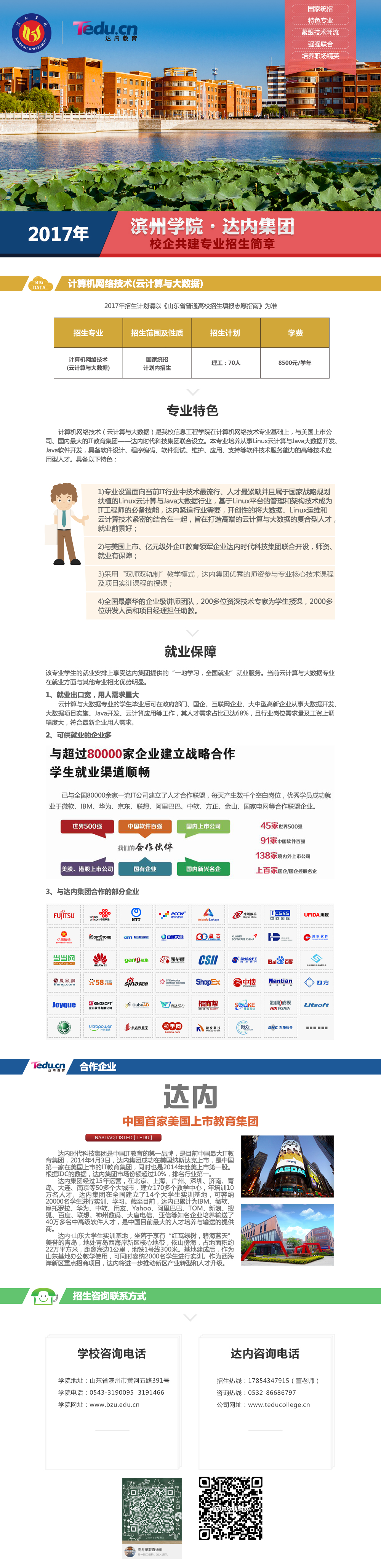 滨州学院 计算机网络技术(云计算与大数据方向) 招生简章