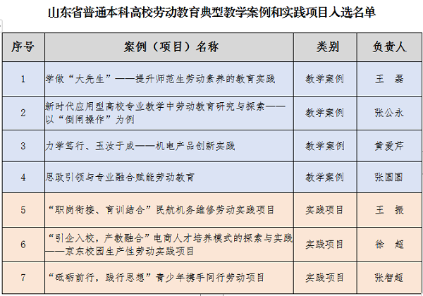 我院1项目入选山东省普通本科高校劳动教育典型实践项目