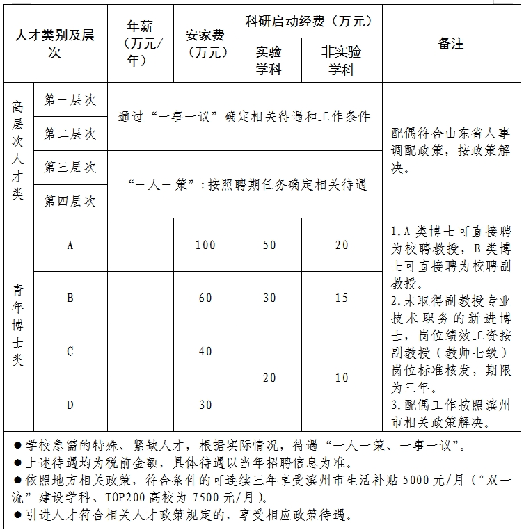 (四)引进人才可根据滨州市政策拎包免费租住人才公寓,也可入住学校周转房。