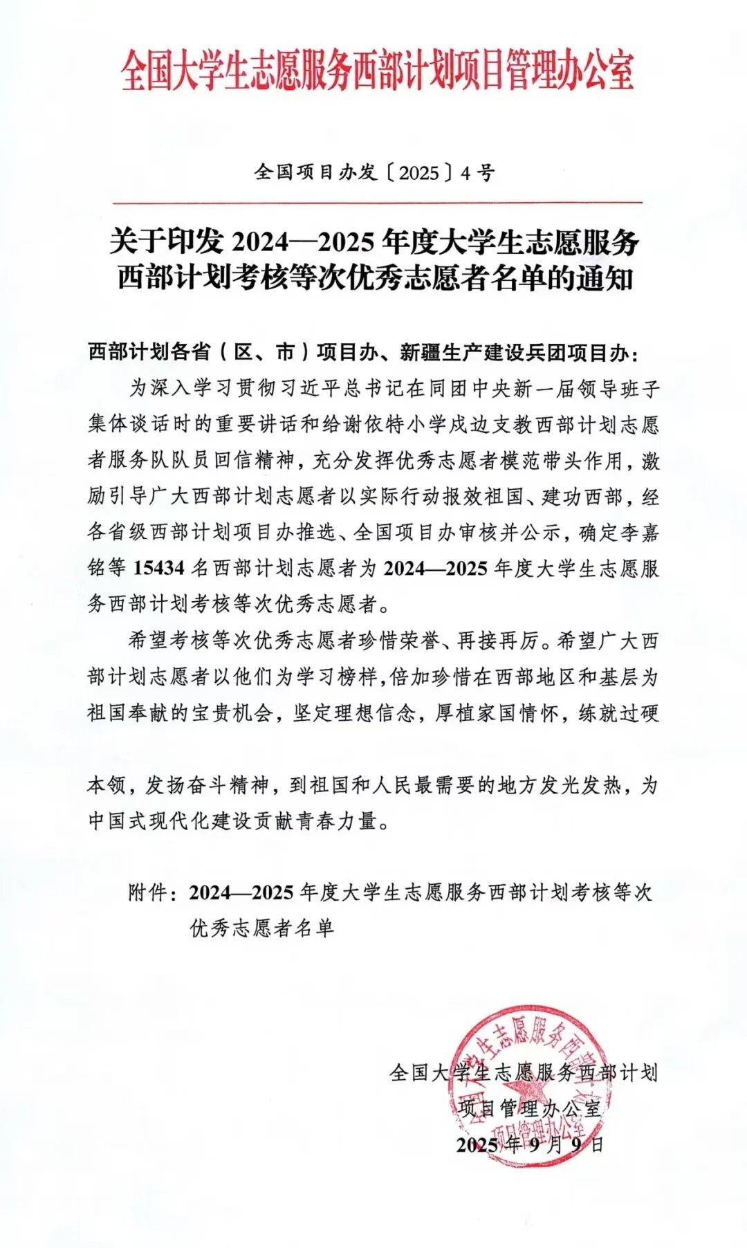 喜报 | 我院学子荣获西部计划全国"优秀志愿者"称号